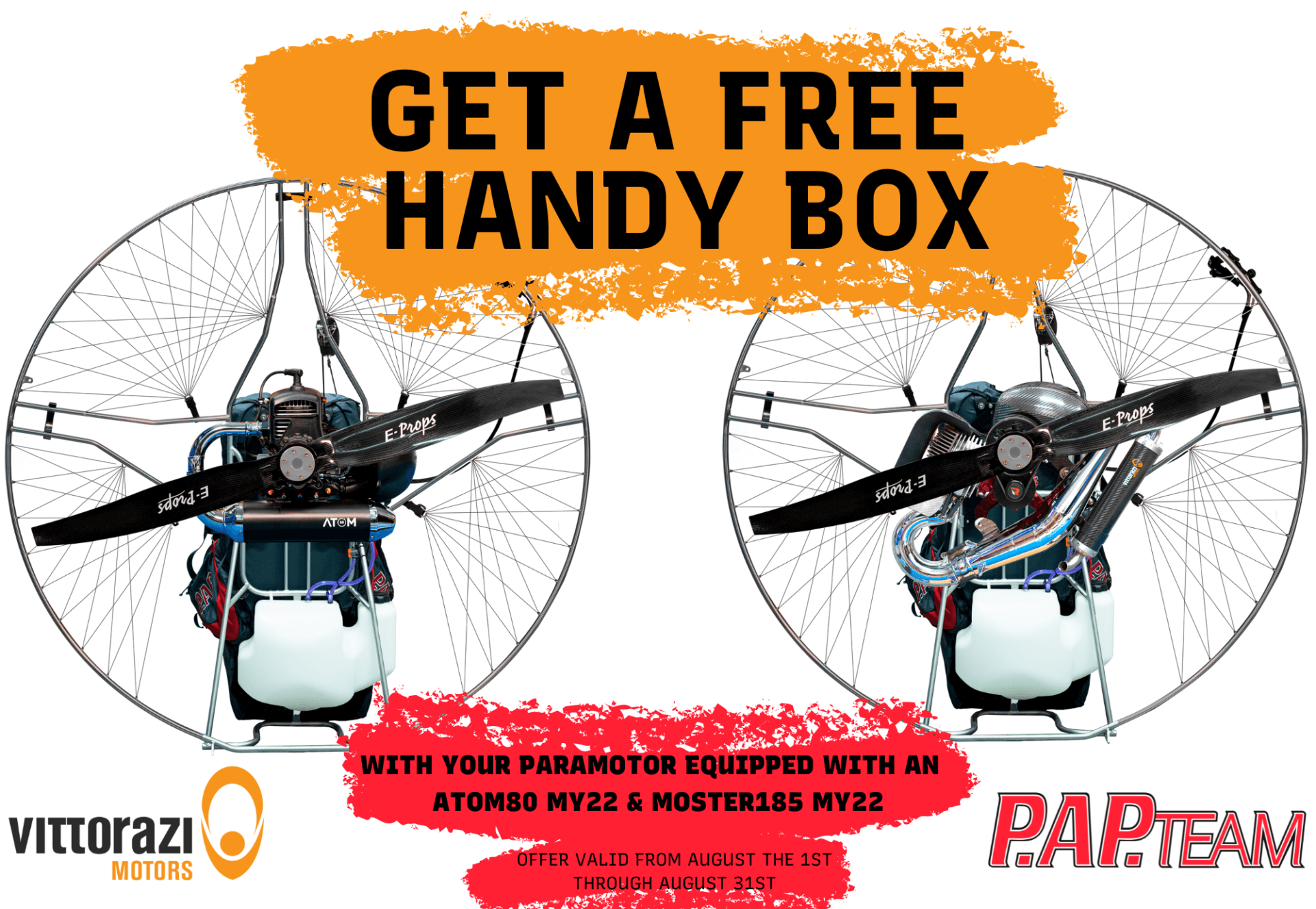 ¡Durante el mes de agosto con todos los pedidos de paramotores equipados con un motor Vittorazi tendrás de regalo un HANDY BOX!